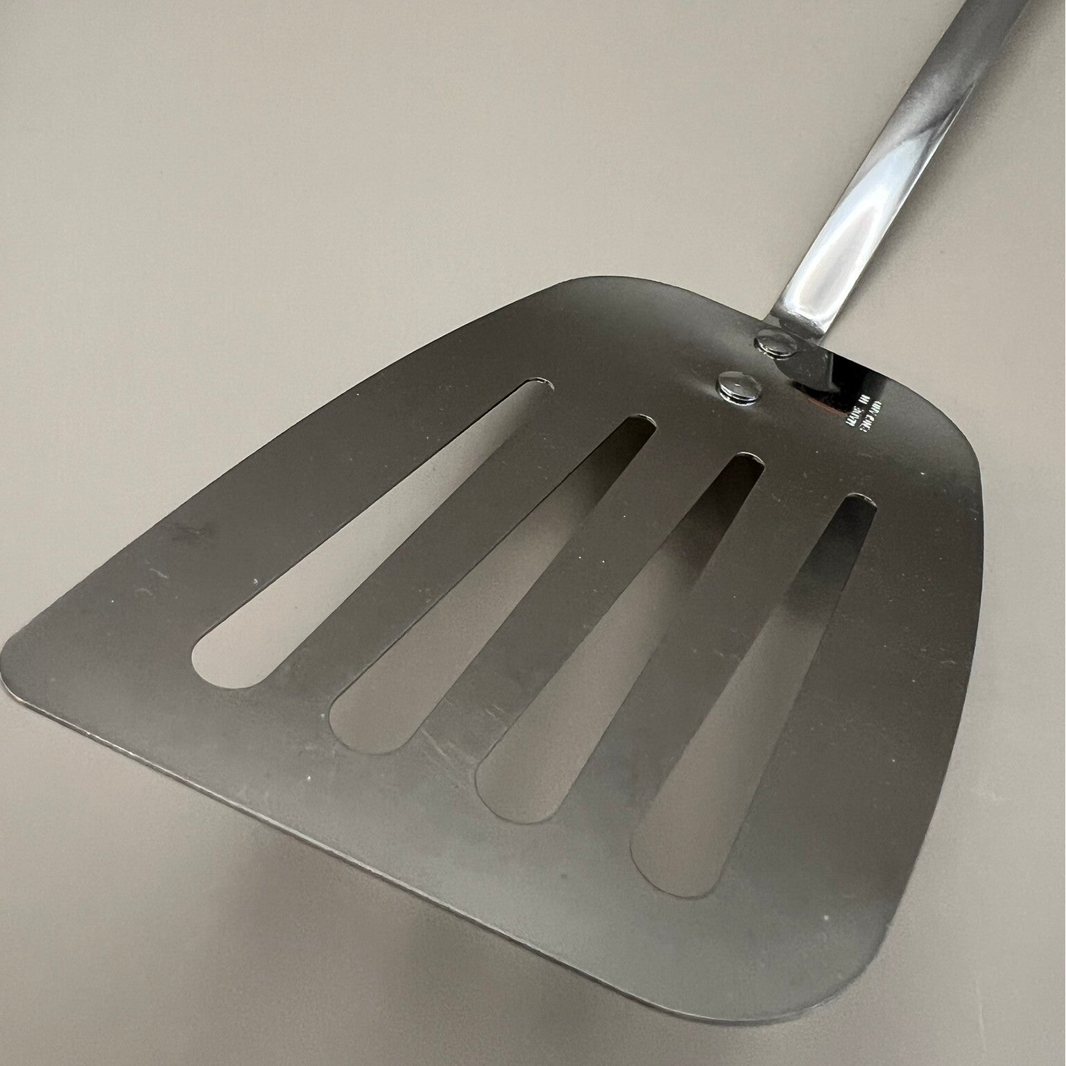Spatel van het bekende Nederlandse merk Brabantia met vrolijk oranje gekleurde steel. Een aanvulling in je keuken!