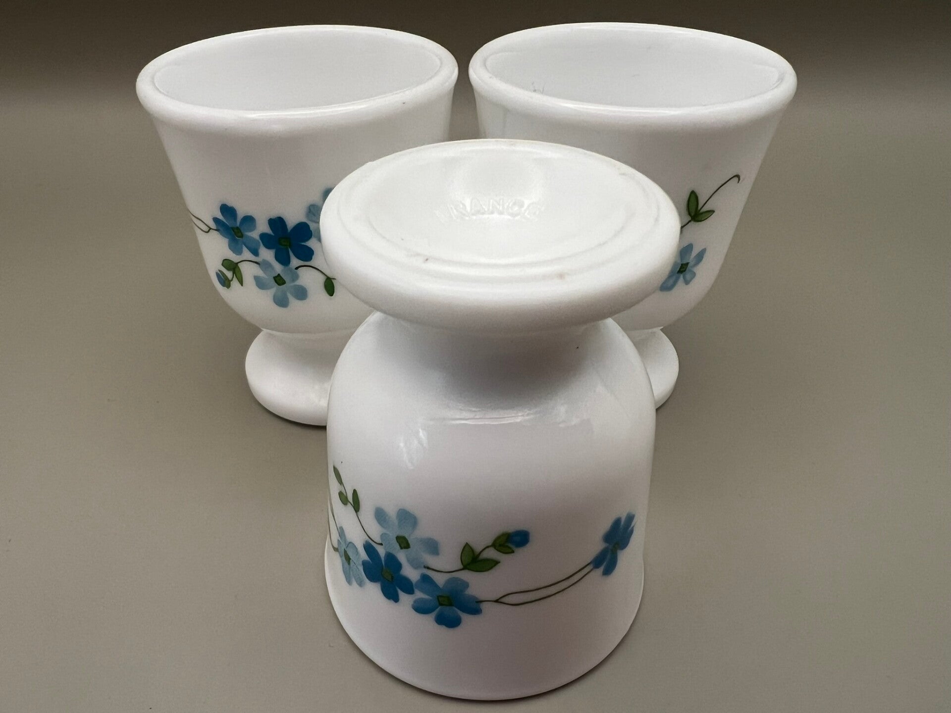 Eierdopjes met kleine blauwe bloemetjes. Leuk om te combineren met andere items uit dezelfde serie!