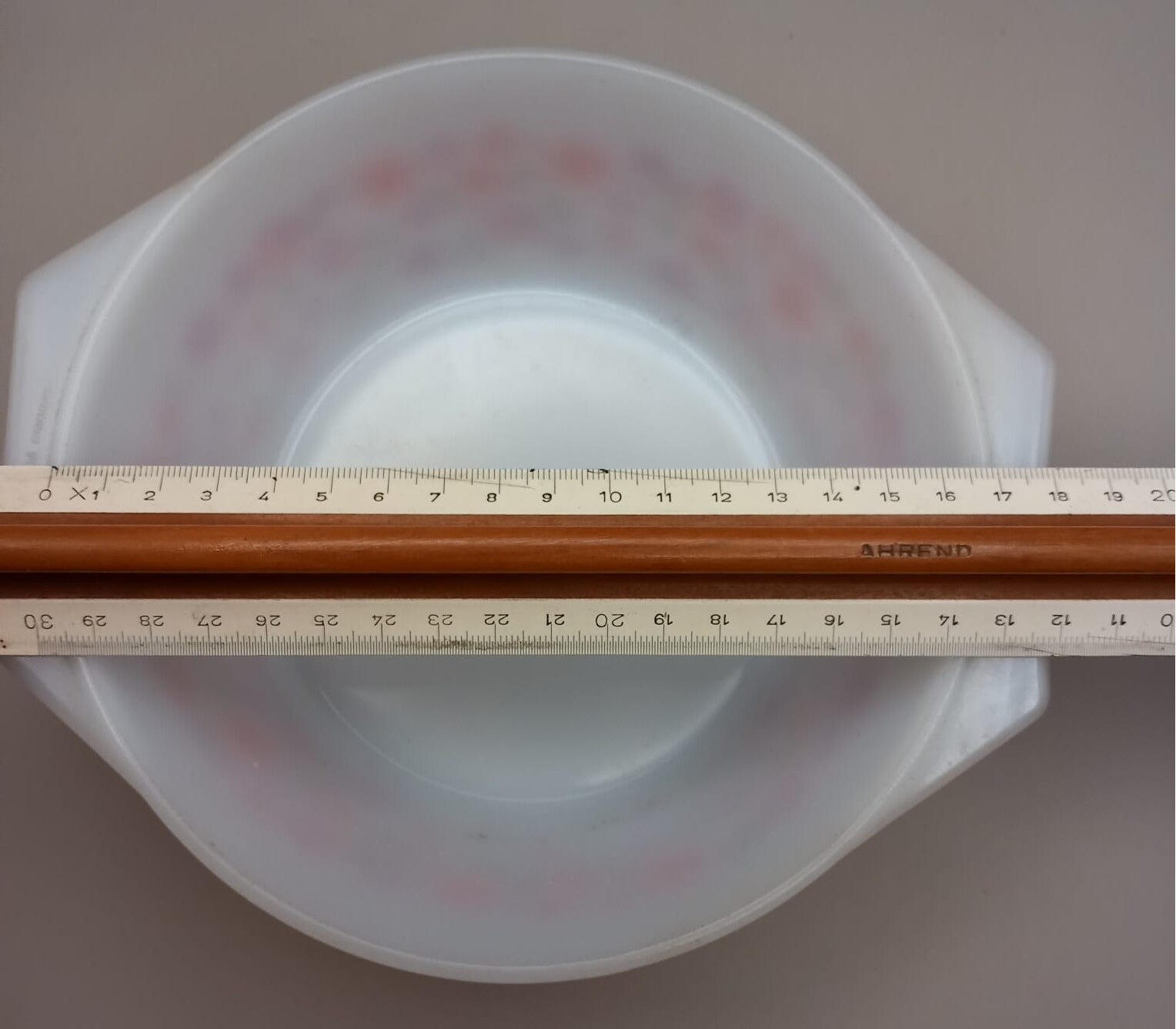 Ovenschaal van ca. 17 cm, melkglas, doorsnede met oranje / lila bloemetjes uit de serie Scania van Arcopal. Kijk in onze shop voor meer items uit deze serie.