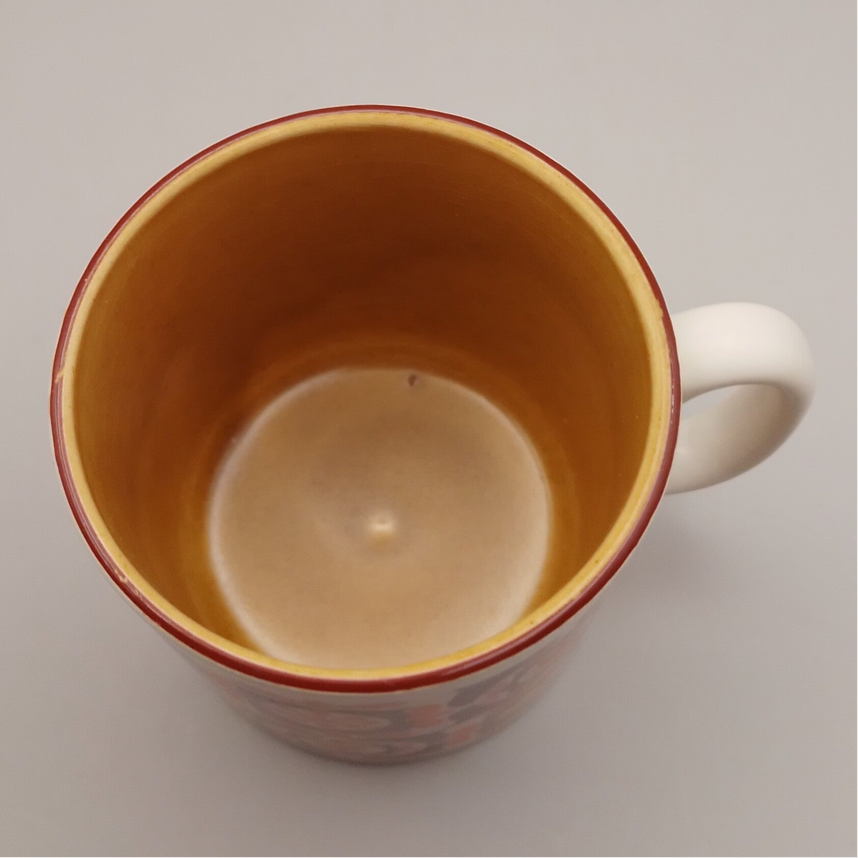 Leuke seventies mok met oranje / bruin patroon en een oranje binnenkant
